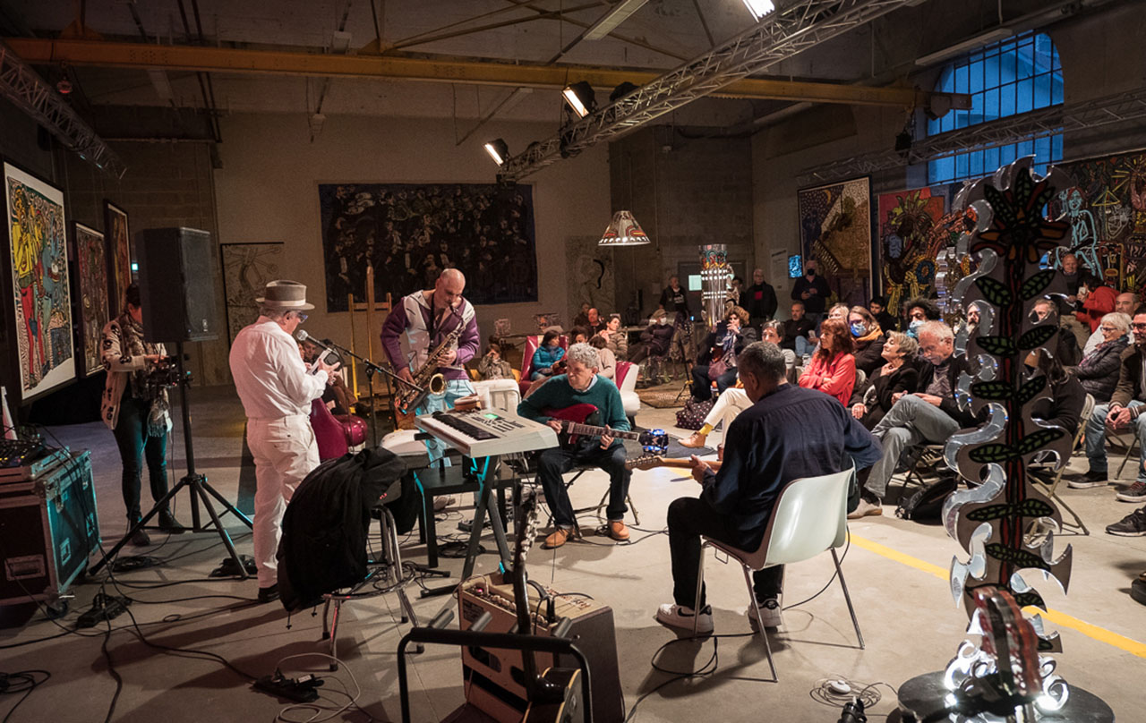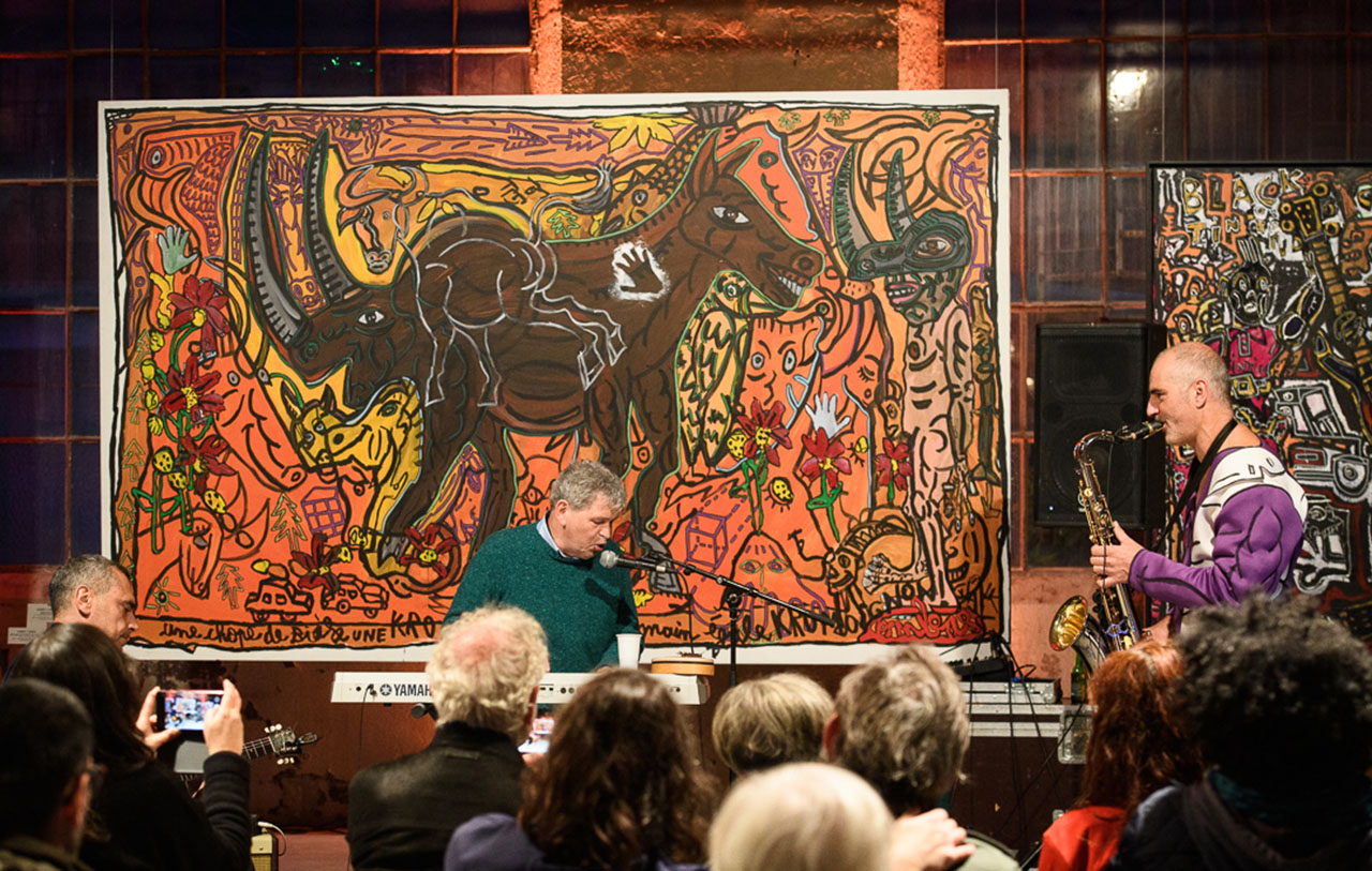 Le Grand Barouf du Rhino avec une exposition de Robert Combas et Lionel Martin en présence permanente durant toute l’exposition pour des concerts et des propositions musicales improvisées.