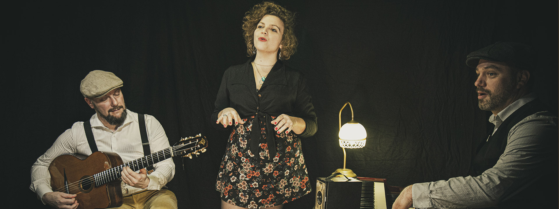 Se laisser séduire par des airs populaires souvent gravés dans notre inconscient collectif, le temps d’une soirée chaleureuse en famille ou entre amis, autour de quelques grands standards de la chanson française et du jazz manouche… Entre douceur nostalgique et entrain d’un swing revigorant, les Swing Gamblers croisent le rythme fringant porté par la guitare de Bruno Decerle (Rue des Deux Amis), dans l’ambiance chaleureusement distillée par l’orgue Hammond de Camille Mouton, tous enseignants renommés et figures de la scène jazz stéphanoise comme avec l’Organic Trio pour ces deux derniers. Au cœur de cet autre trio complice, la voix au charme naturel de Lou Rivaille, jeune chanteuse (mais aussi auteure-compositrice, pianiste et percussionniste) désormais incontournable sur de nombreux projets et qui a notamment été lauréate du Tremplin Rezzo Jazz à Vienne l’an dernier avec son quartet Elliavir. Une interprète qui sait jouer des mots et des rimes et qui aime quand la musique évoque des images et des sentiments, pour mieux nous les partager comme dans l’intimité conviviale du lycée hôtelier.